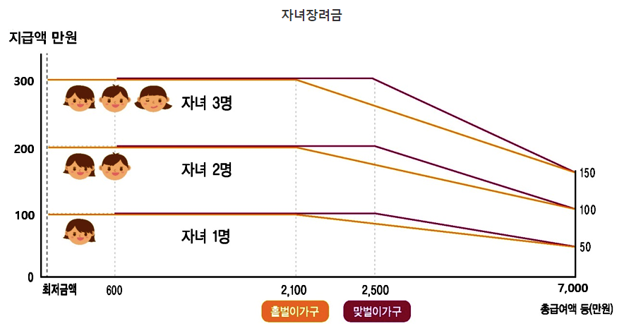 | 최대지급액 | 자녀1인당 100만원(최소 50만원) | ||